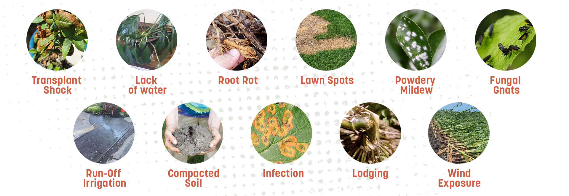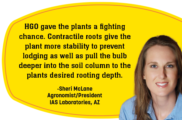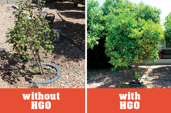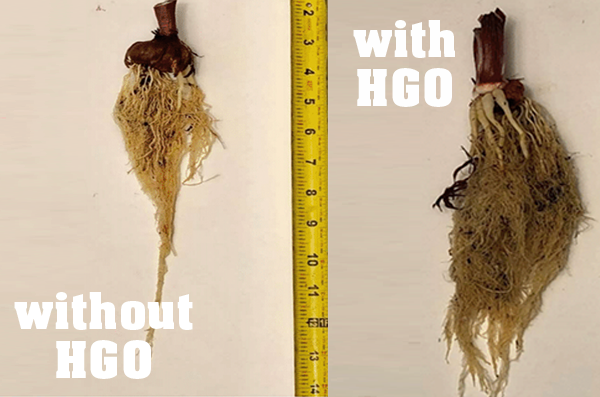HGO assists the growing environment and health of plants so that they are more resistant to pests, temperature changes, wind (prevents lodging by encouraging contractile roots), and lack of water. HGO also prevents powdery mildew, fungal gnats, and root rot.